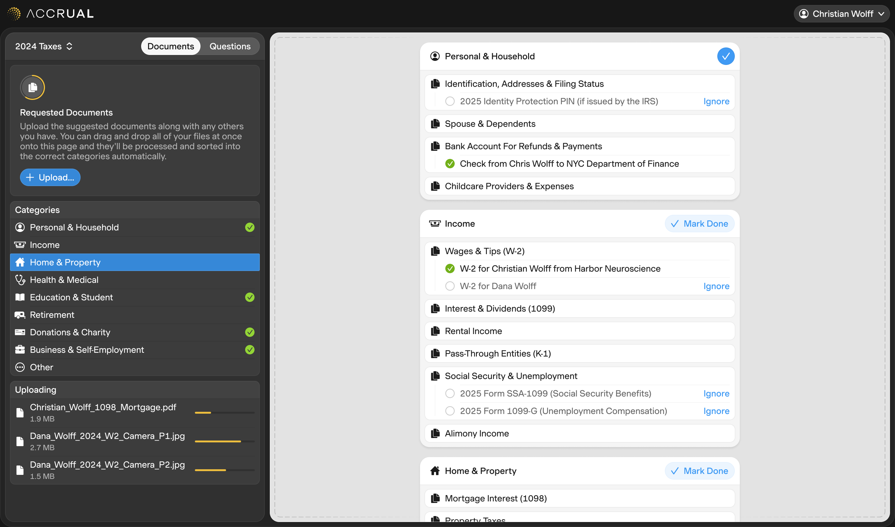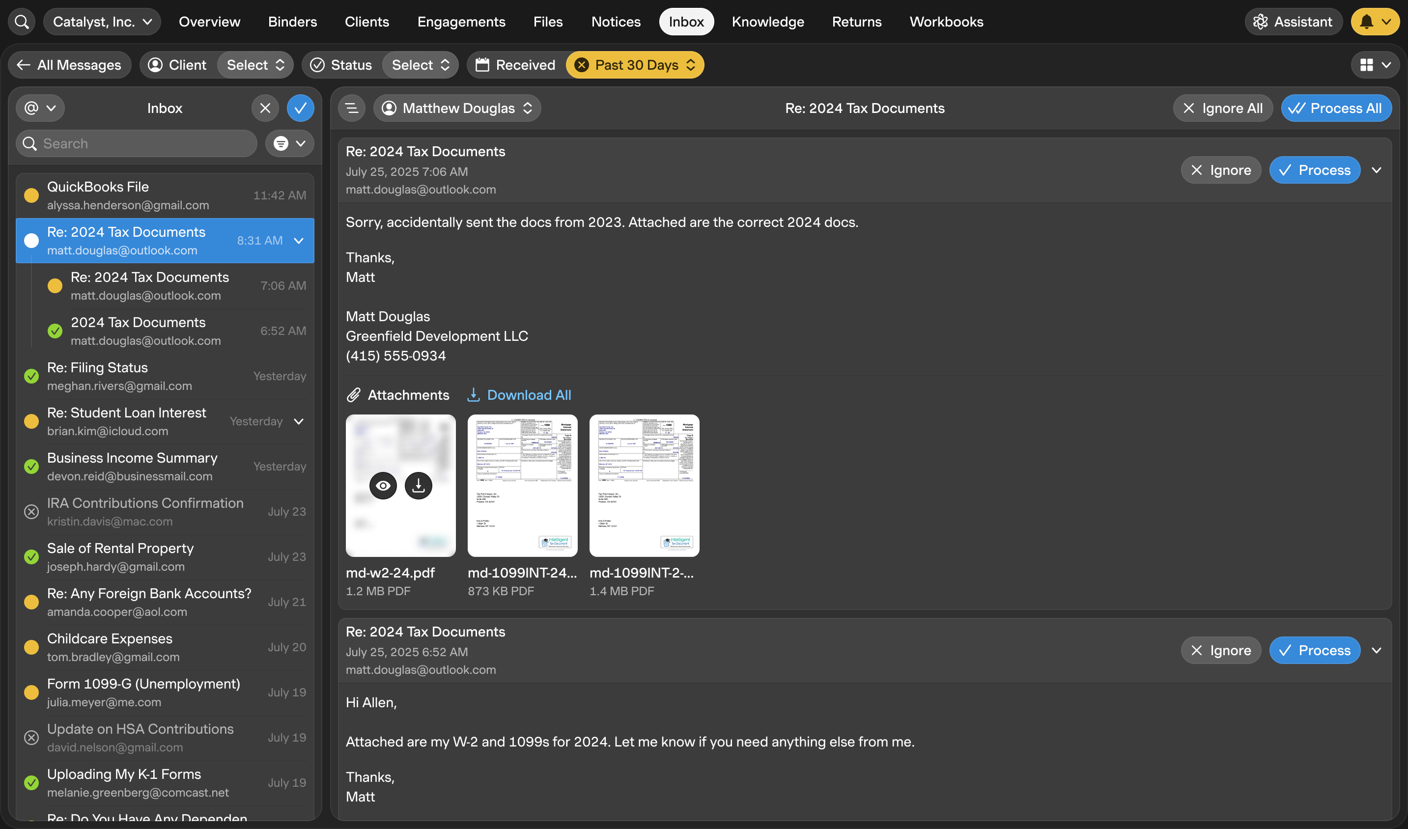 Extract financials, collect supporting documents, and route everything through a secure client portal for clean intake.